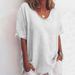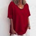 Solid color V-neck short-sleeved plus size women's T-shirt