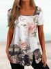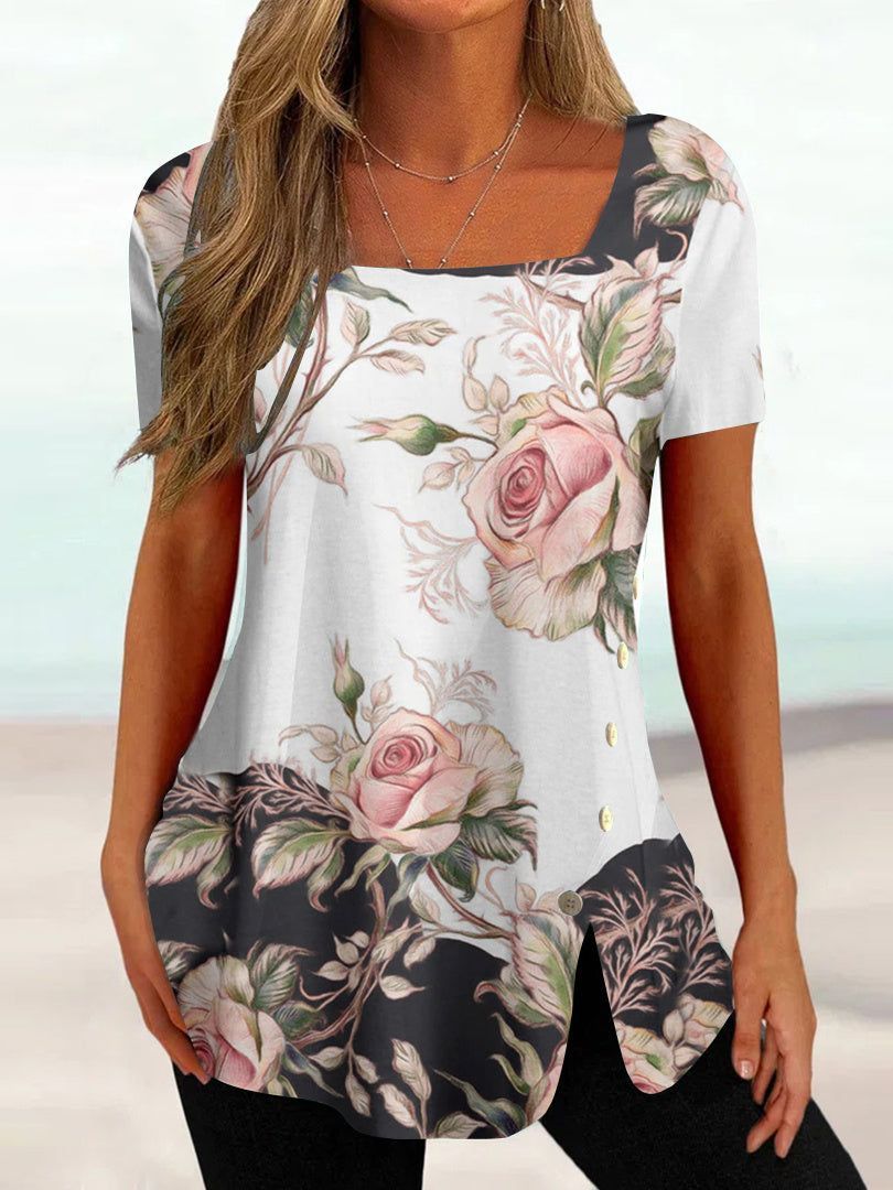 Women's Short Sleeve U-neck Floral Printed Graphic Button Top