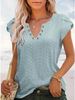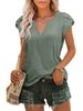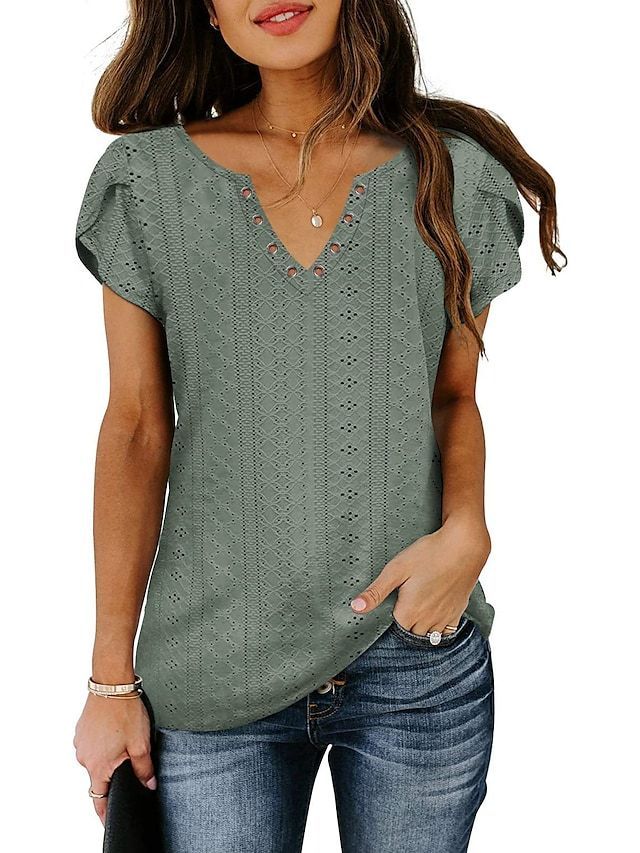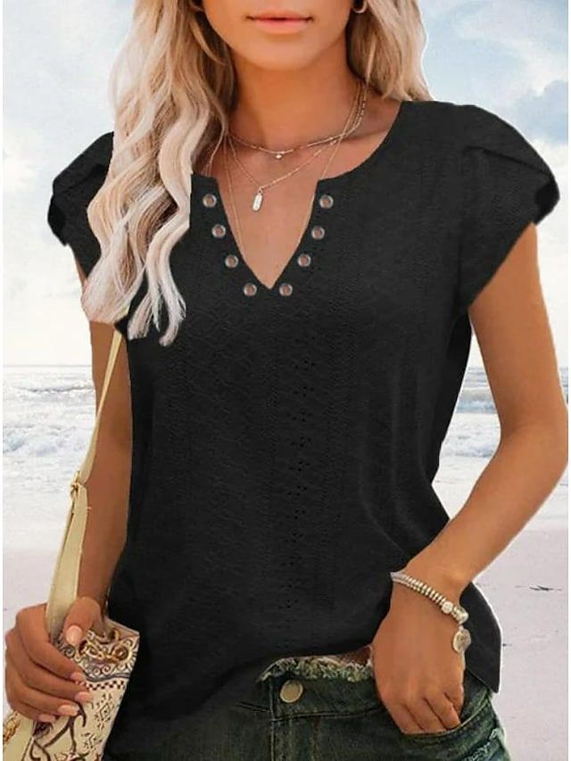 Women's T shirt Tee Light Blue Black White Plain Button Short Sleeve Casual Basic V Neck Regular S