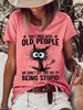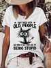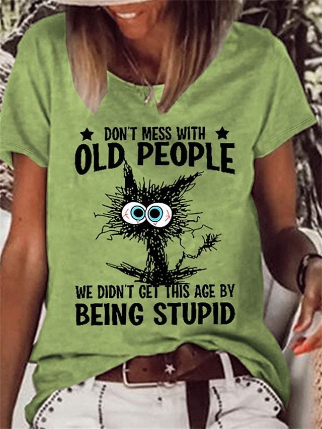 Women's T shirt Tee White Pink Blue Cat Letter Print Short Sleeve Daily Weekend Basic Round Neck Regular Cat Painting S